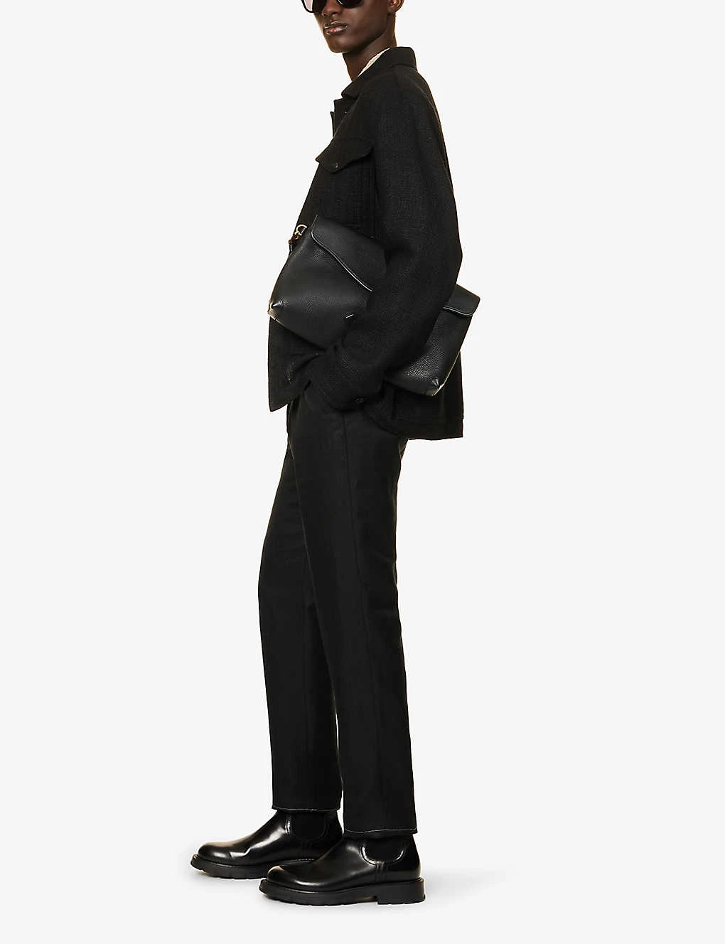- Concealed button and zip-fly fastening at front