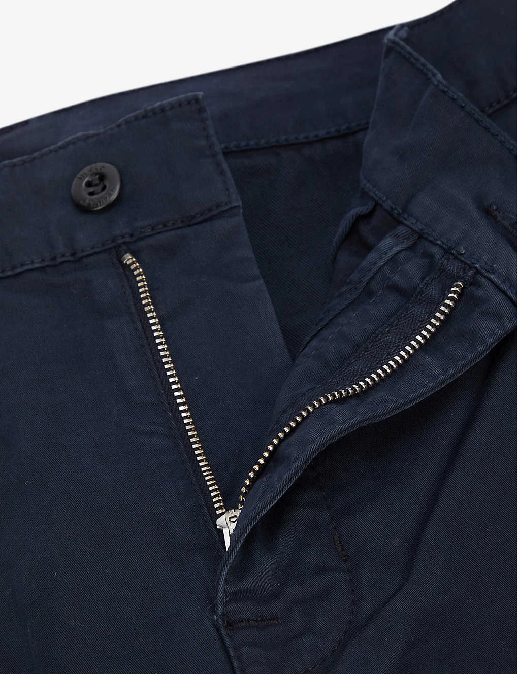 - Exposed button and concealed zip-fly fastenings at front