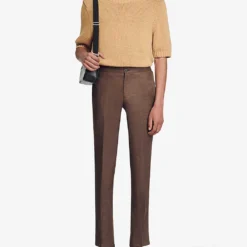 Sandro Elasticated-waist Tapered-leg Mid-rise Linen Trousers