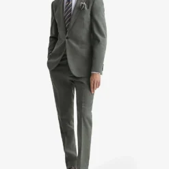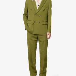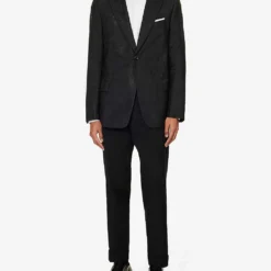 - Regular fit, notched lapels, shoulder pads, long sleeves, welt pocket at chest, darts at front, two flap pockets at front, double vent at back
