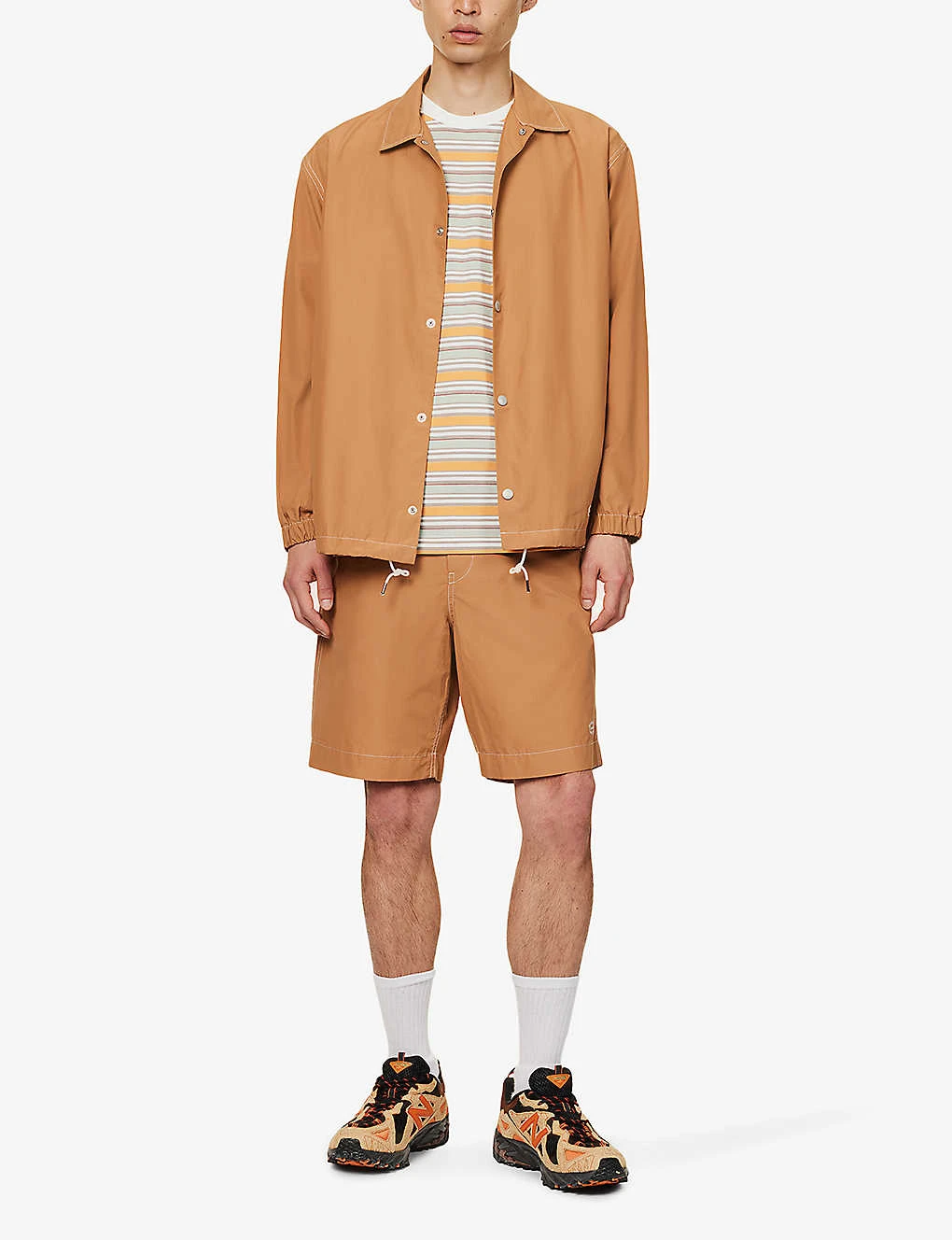 - Regular-fit, crewneck, ribbed trim at neck, short sleeves, patch pocket at chest, all-over striped pattern