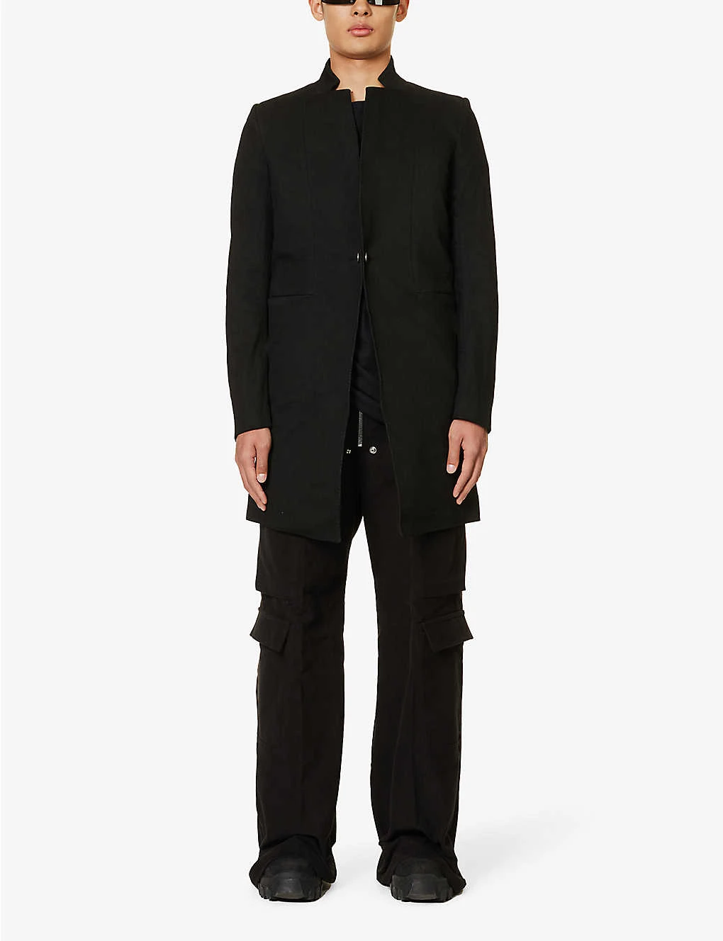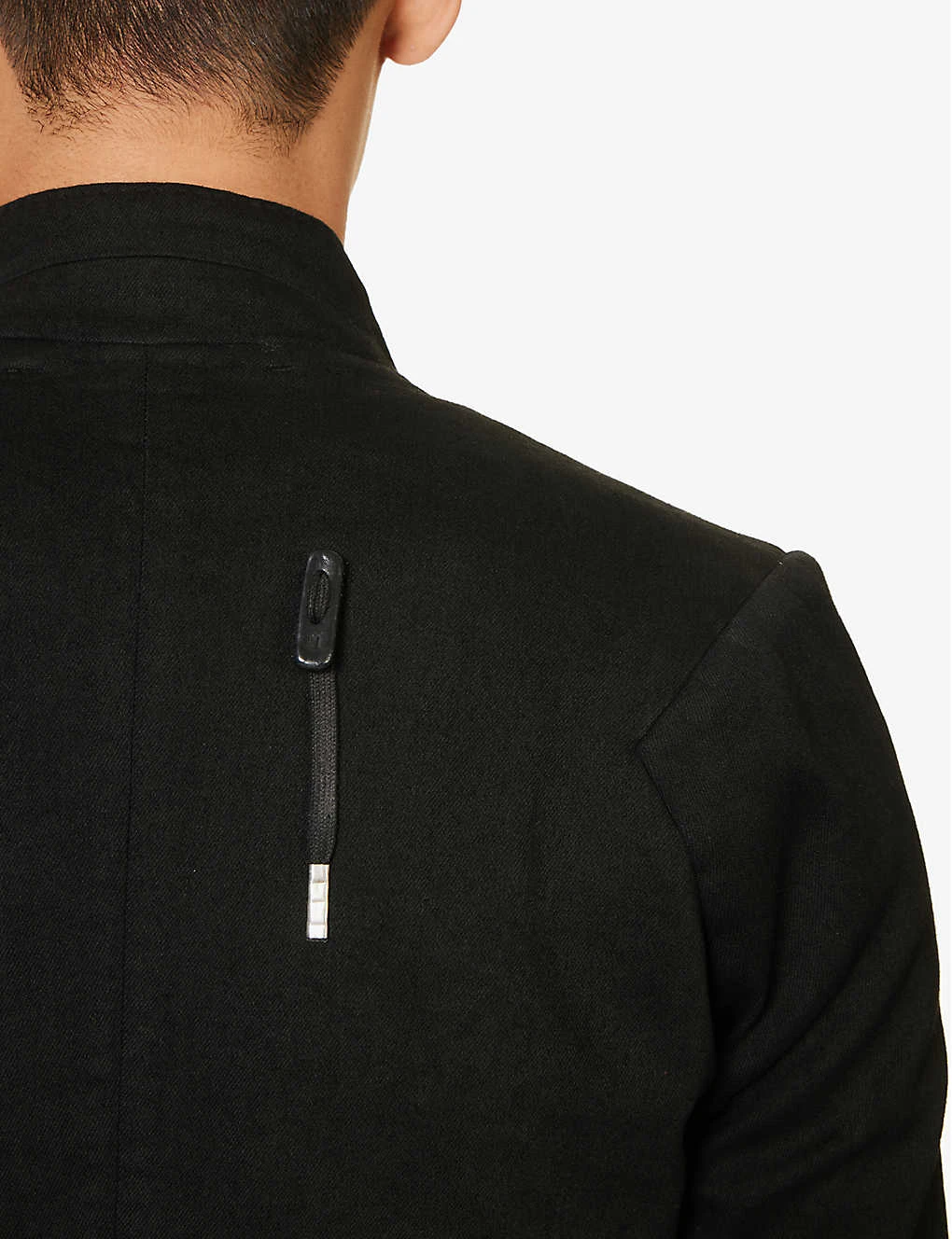 - Regular fit, stand collar, long sleeves, buttoned cuffs, two slip pockets at sides, single vent at back