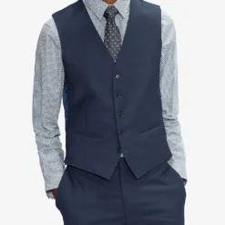 - Slim fit, single-breasted, peak lapels, long sleeves, side pockets, chest pocket