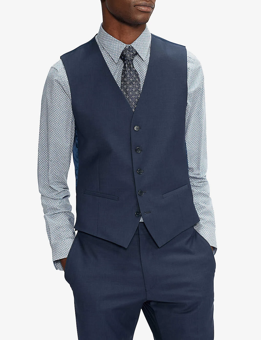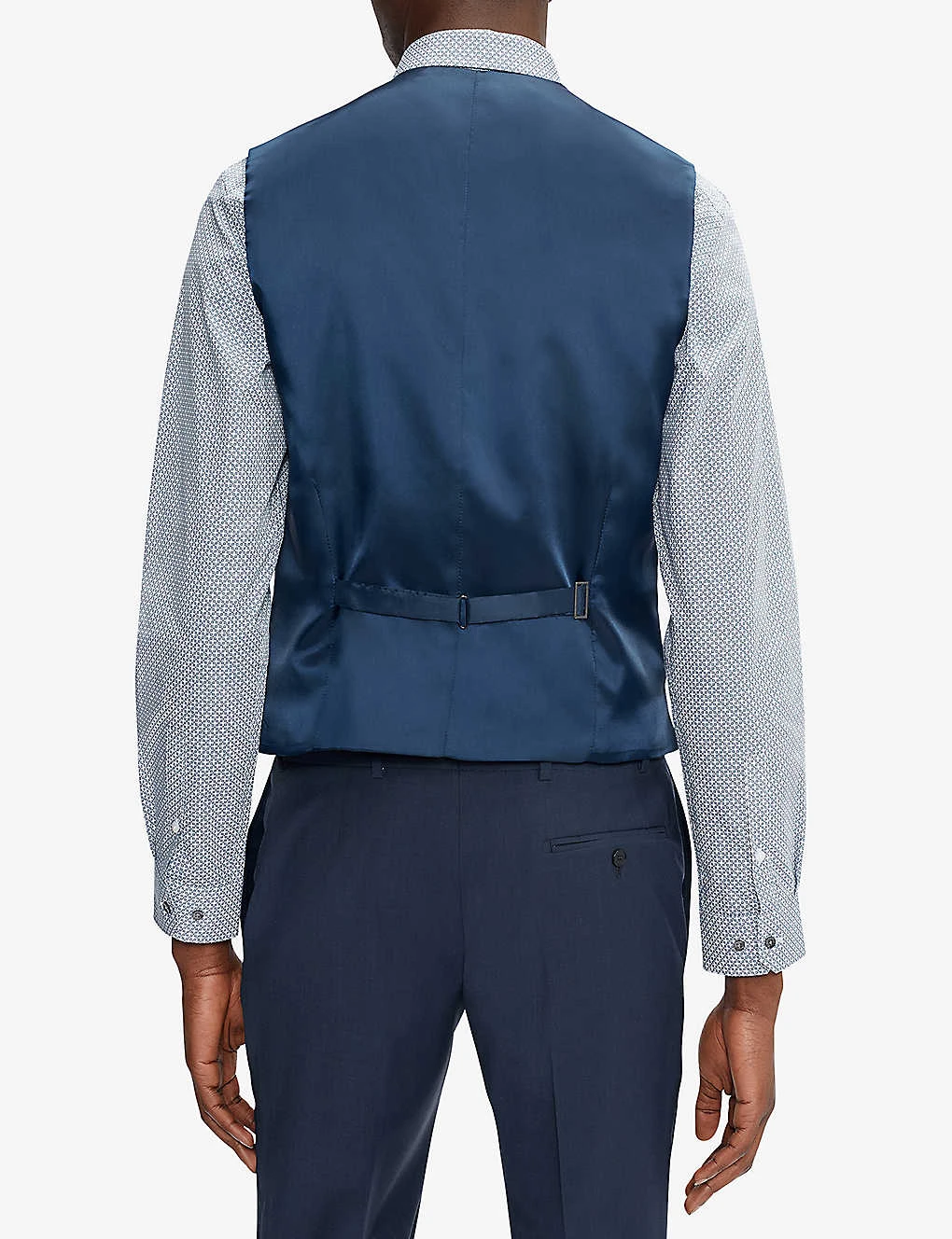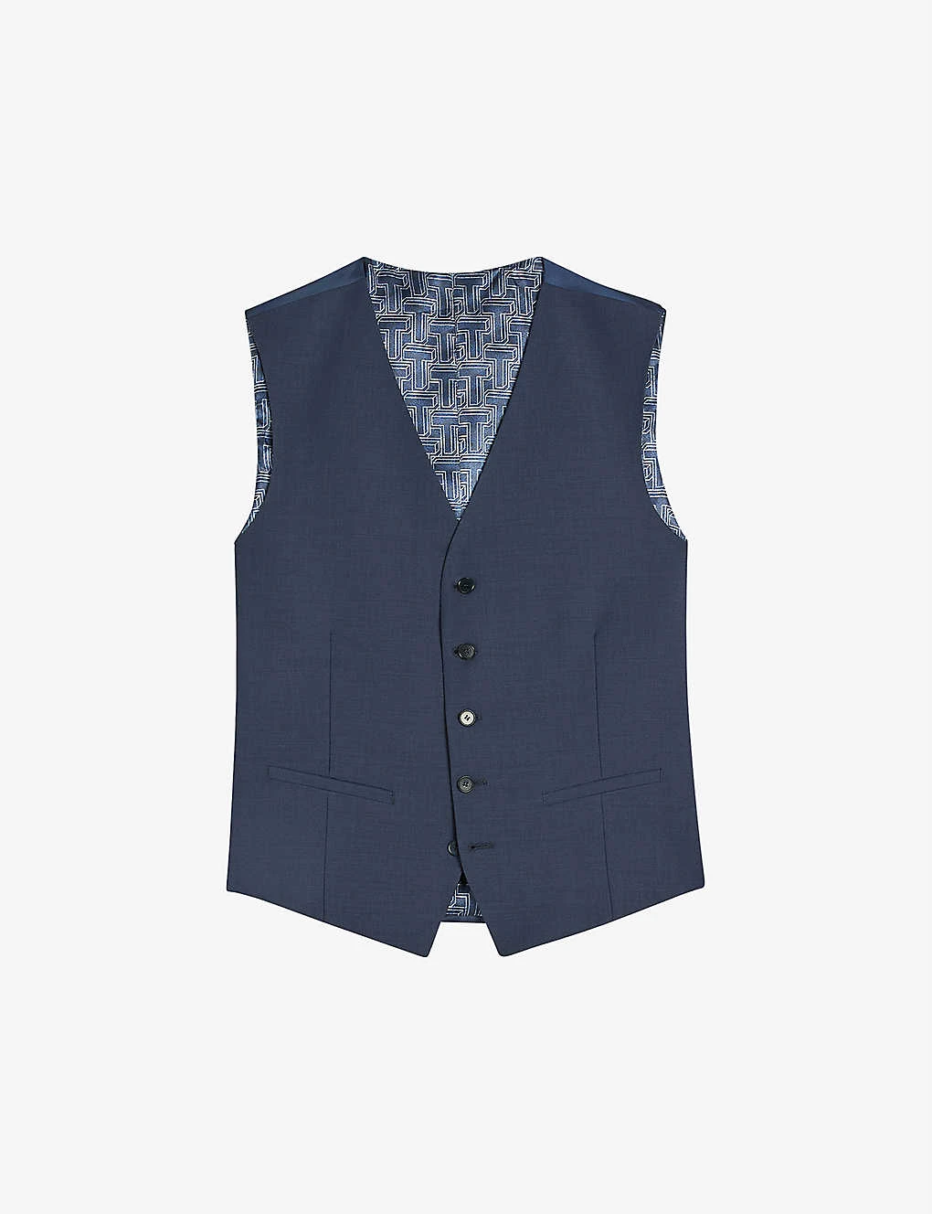 - V neckline, sleeveless, button-detailing, Ted Baker branded, part of a three-piece suit, slim-fit