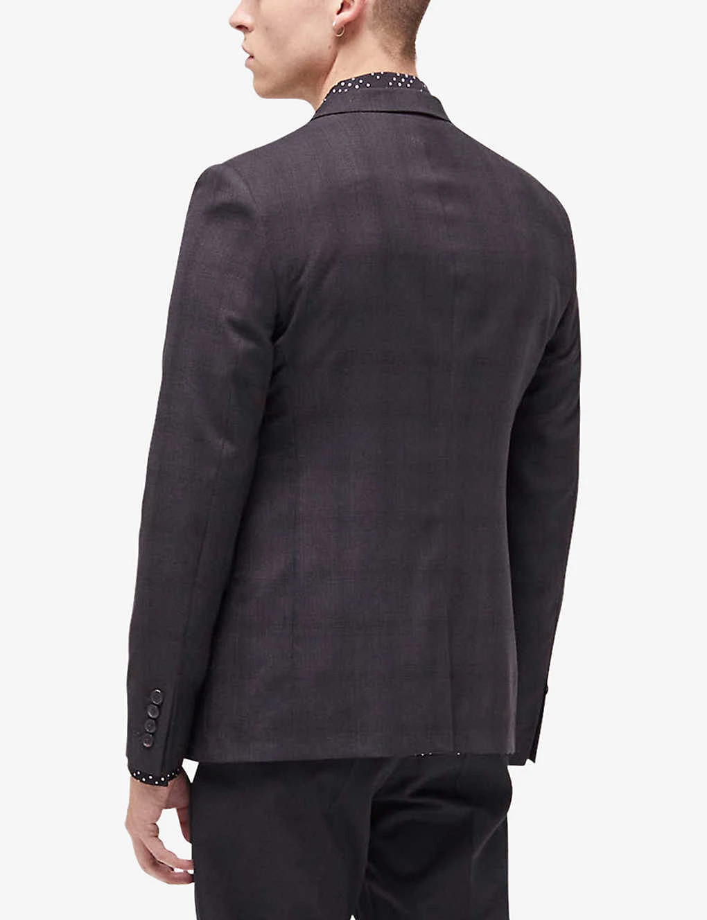 - Regular fit, long sleeves, peak lapels, single-breasted design, all-over checked print, chest welt pocket, two side flap pockets, buttoned cuffs, single back vent, fully lined