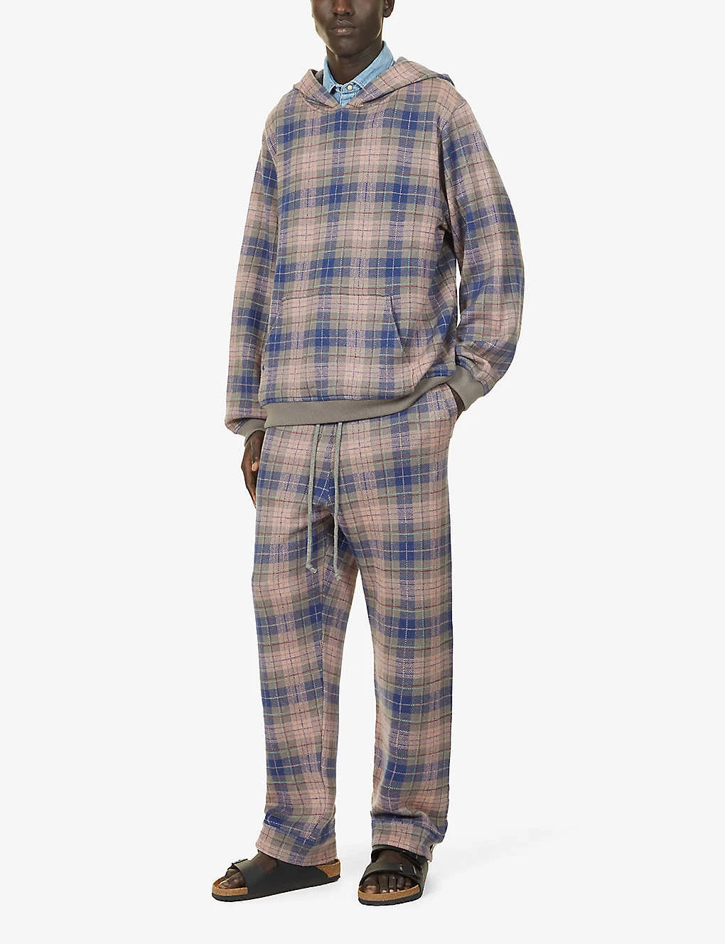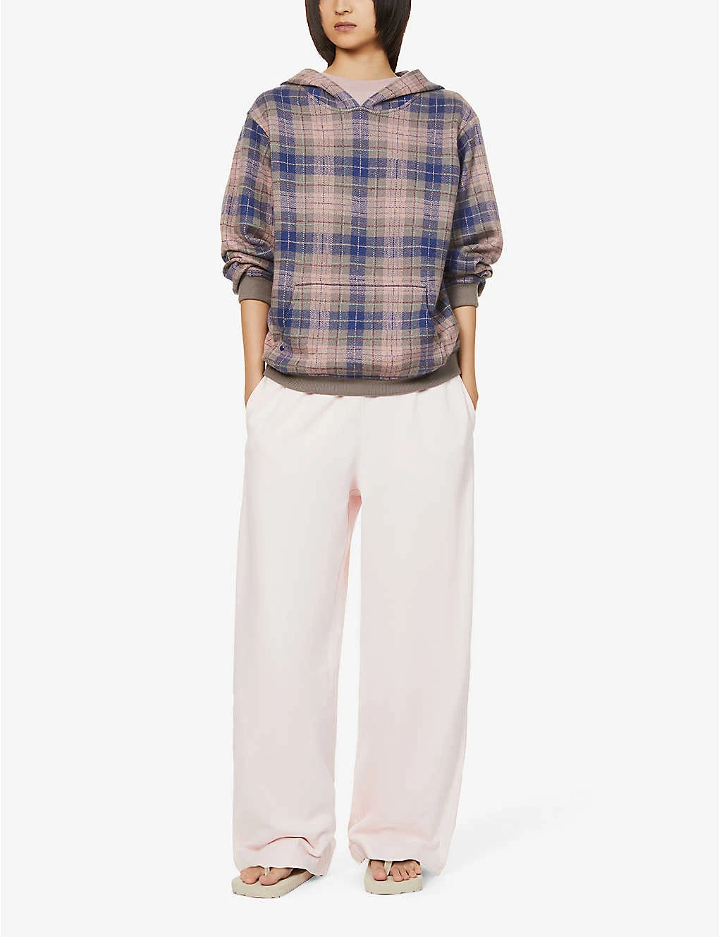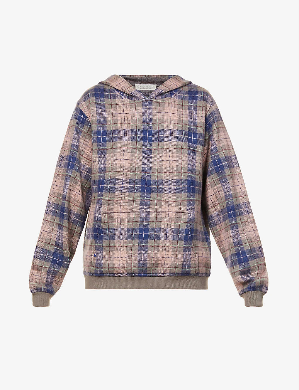 - Relaxed fit, hood, dropped shoulders, long sleeves, kangaroo pocket at front, lapis lazuli popper fastening at side, all-over plaid pattern, ribbed trims
